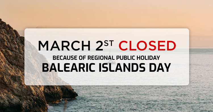 textilmallorca will be closed thursday, march 2nd because of the Balearic Islands Day. You can place your orders via web or email and they will be served on Tuesday, March 3rd .